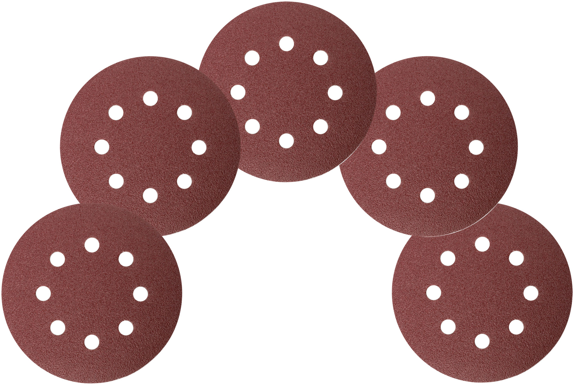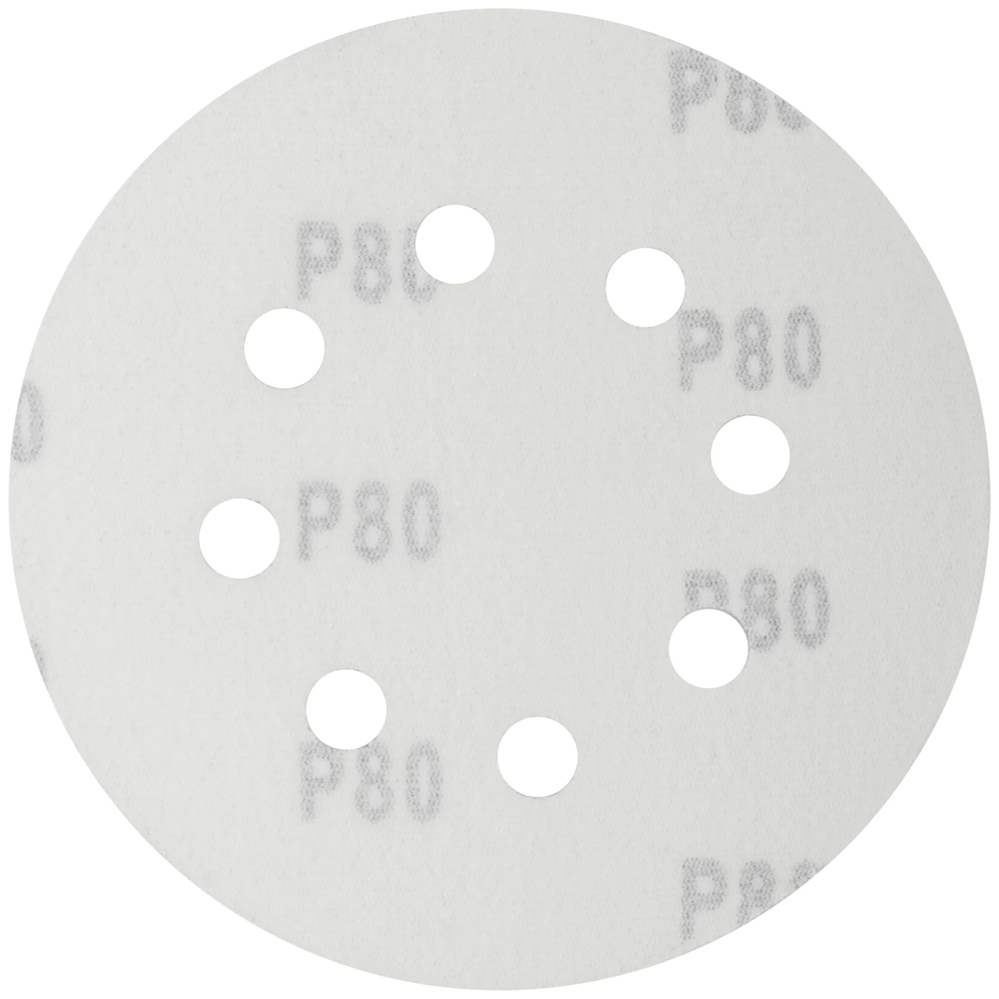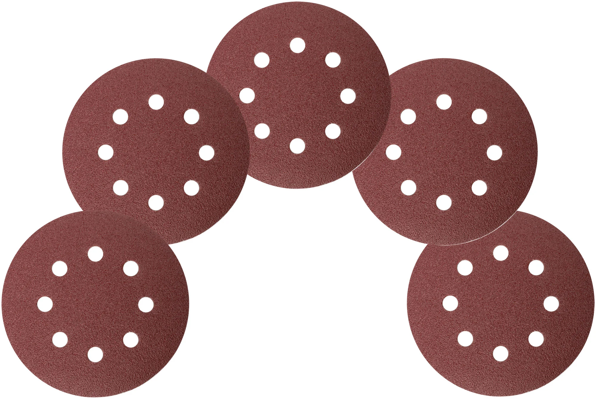 Круги изготовлены из высококачественного алюминий-оксидного абразива, что гарантирует их длительный срок службы и высокую производительность. Липучка на обратной стороне обеспечивает надежную фиксацию на шлифмашине, а 8 отверстий способствуют эффективному отводу пыли, что улучшает качество обработки и поддерживает чистоту рабочей зоны.