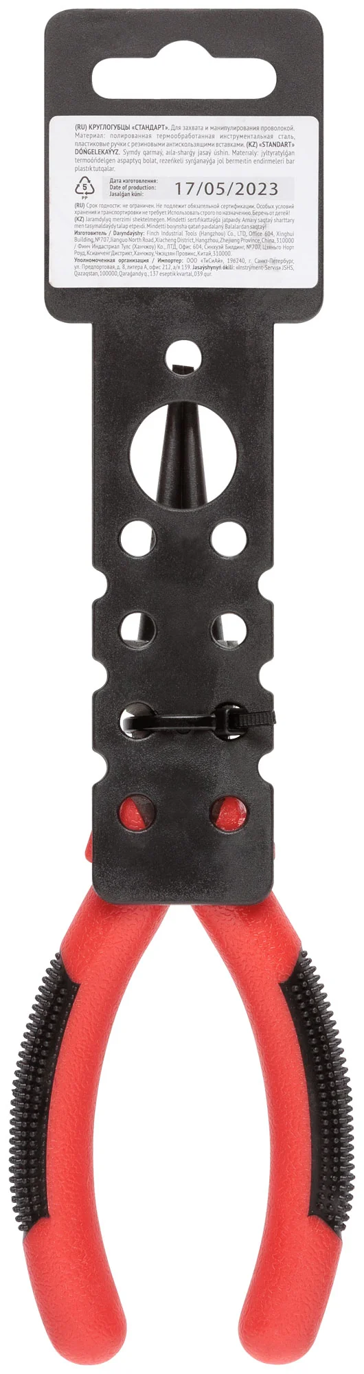 Круглогубцы длиной 165 мм обладают оптимальными размерами для работы в труднодоступных местах. Подвесная пластиковая упаковка позволяет удобно хранить инструмент, защищая его от повреждений.