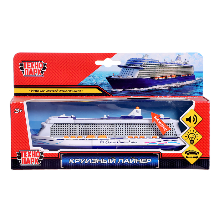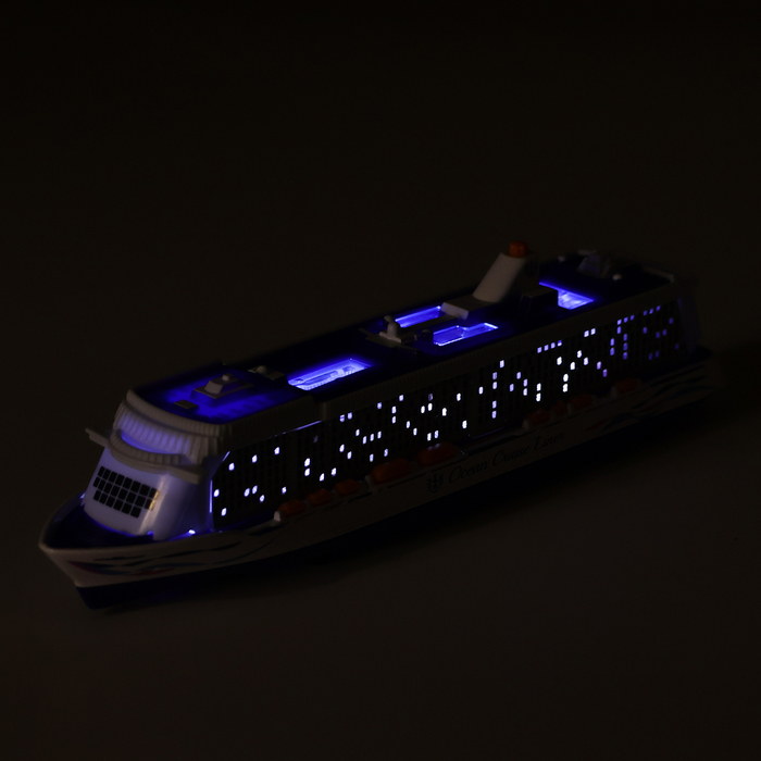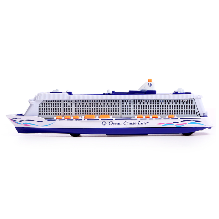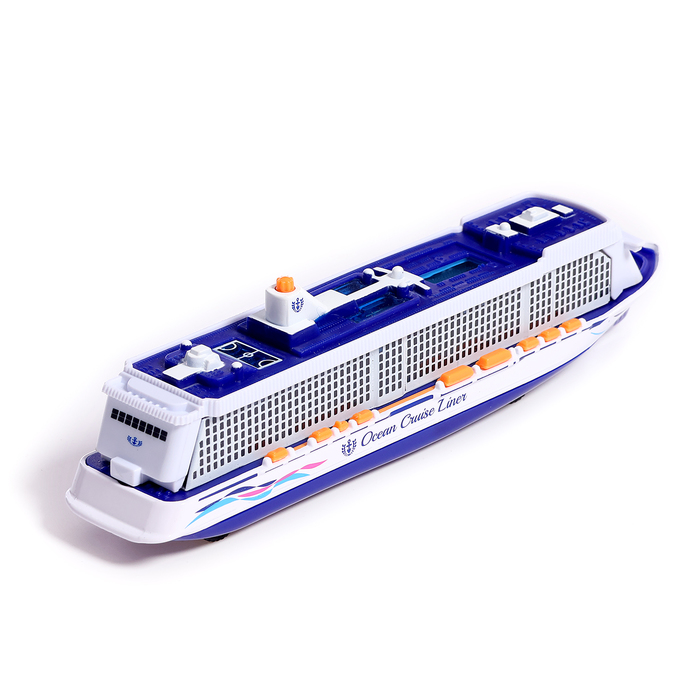 Отправляйся в морское путешествие! Инерционный круизный лайнер со светом и звуком — это самоходная модель белого корабля длиной 20 см. Игрушка воспроизводит элементы настоящего пассажирского лайнера для игр в ванной или на полу.