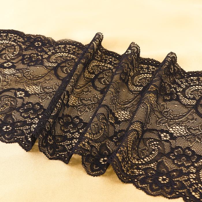 Кружевная эластичная ткань, 190 мм, 2.7±0.5 м, чёрная №14 — Характеристики