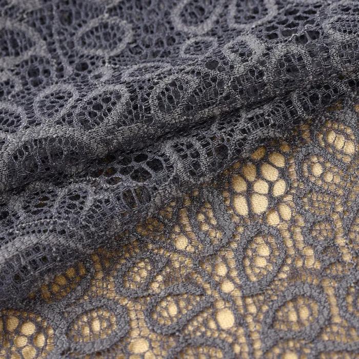 Создайте уникальный стиль с деталями! Серая эластичная кружевная ткань (2,7 м) это идеальный выбор для создания модной одежды и изысканных аксессуаров. Высококачественное сочетание нейлона и спандекса придаёт ткани прочность и эластичность, обеспечивая комфорт и долговечность.