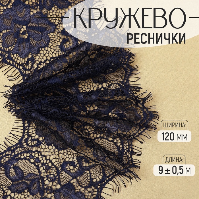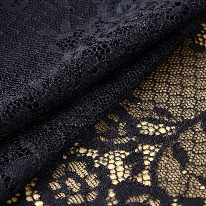 Кружевная эластичная ткань, 195 мм × 2,7 ± 0,5 м, цвет чёрный — Характеристики