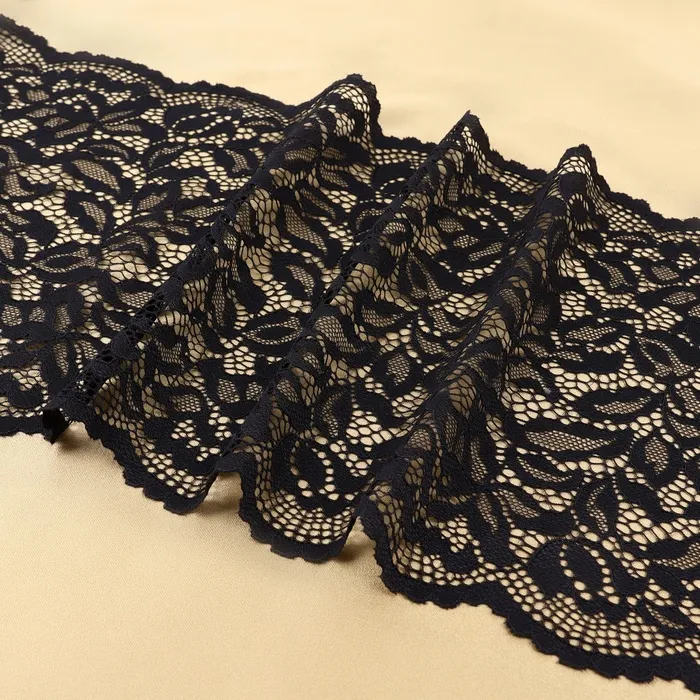 Кружевная эластичная ткань, 220 мм, 2.7±0.5 м, чёрная №23 — Характеристики