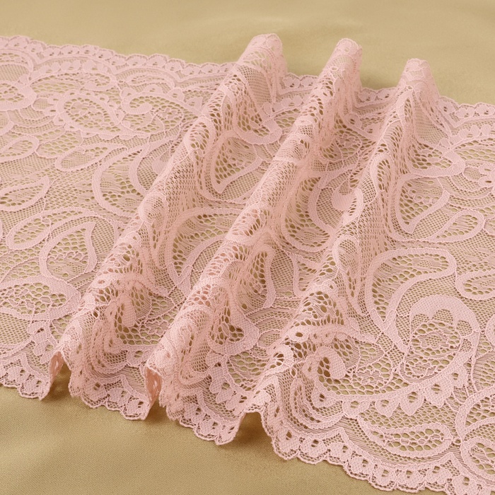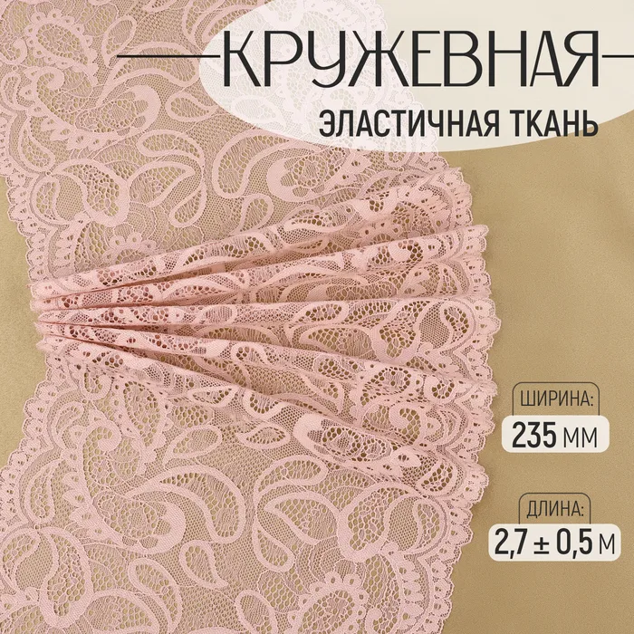 Кружевная эластичная ткань, 235 мм, 2.7±0.5 м, розово-бежевая — Характеристики