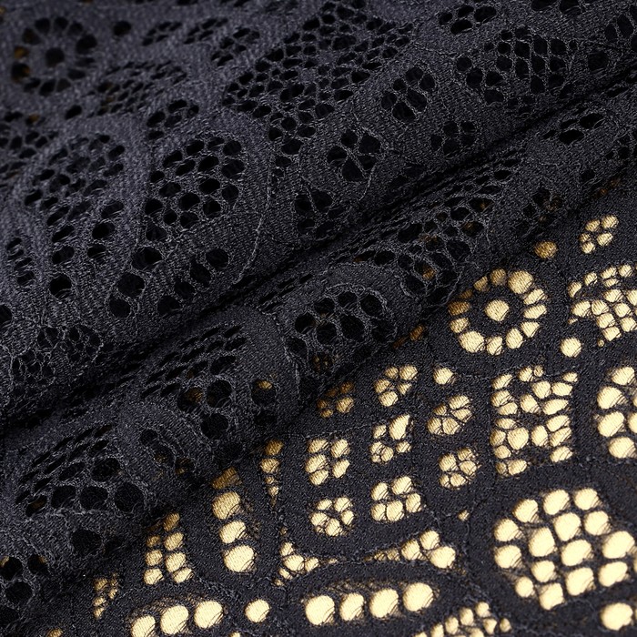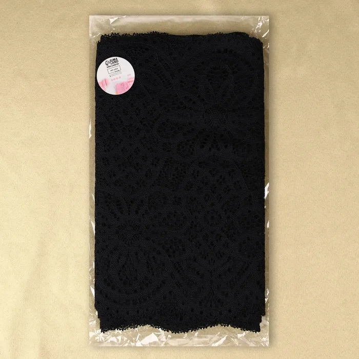 Создайте элегантные и утонченные образы! Чёрная ажурная ткань с эластичностью (ширина 240 мм, длина 2.7 м) – это великолепный выбор для любителей шитья и рукоделия. Эта ткань сочетает в себе красоту кружева и удобство растягивающихся материалов.