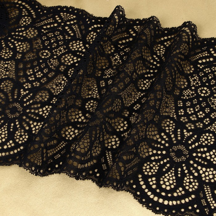 Кружевная эластичная ткань, 240 мм, 2.7±0.5 м, чёрная №25 — Характеристики