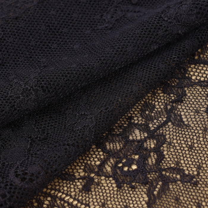 Классический черный цвет: Подходит для создания как классического, так и современного стиля. Черное кружево добавит изюминку любой детали гардероба, делая её элегантной и универсальной. Применение в различных стилях одежды позволяет использовать материал в самых разных направленияхот готики до вечернего шика. Добавьте текстуру и глубину вашим проектам с помощью этой универсальной ткани!