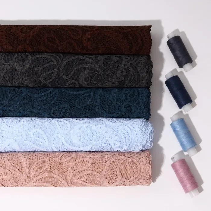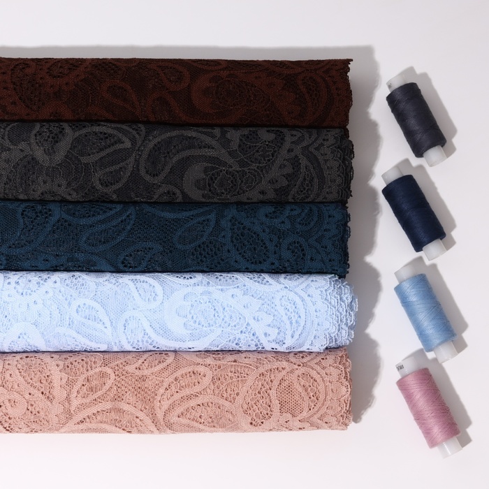 Кружевная эластичная ткань, 240 мм, 2.7±0.5 м, синяя — Характеристики