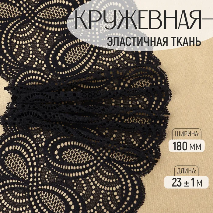 Кружевная эластичная ткань «Бесконечность», 180 мм, 23±1 м, чёрная — Характеристики