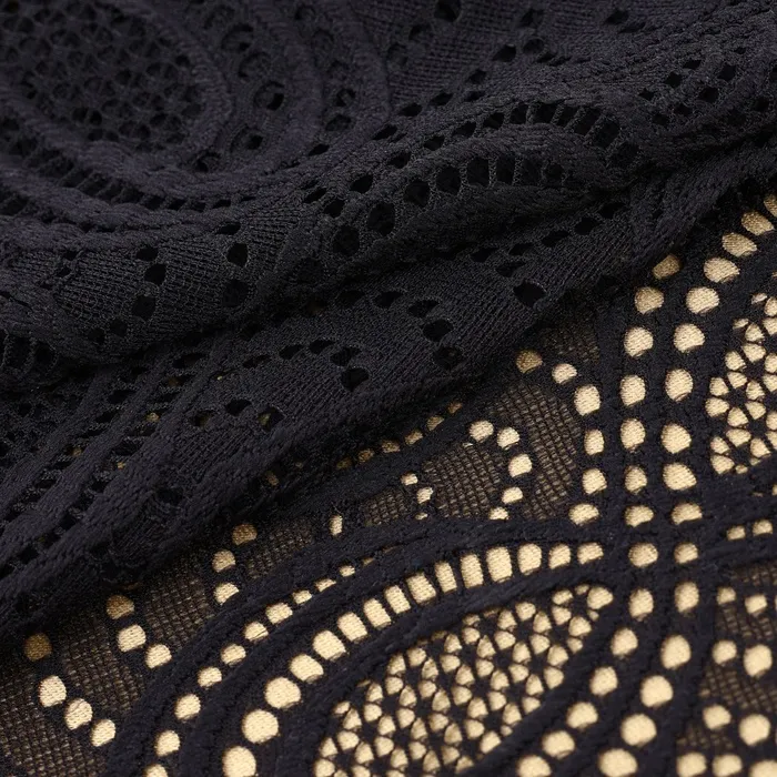 Представляем вашему вниманию универсальную чёрную эластичную ткань из коллекции кружевных материалов, отличающуюся высоким качеством и стильным дизайном. Этот материал вдохнёт жизнь в любой ваш проект, став изюминкой одежды или элементов декора.