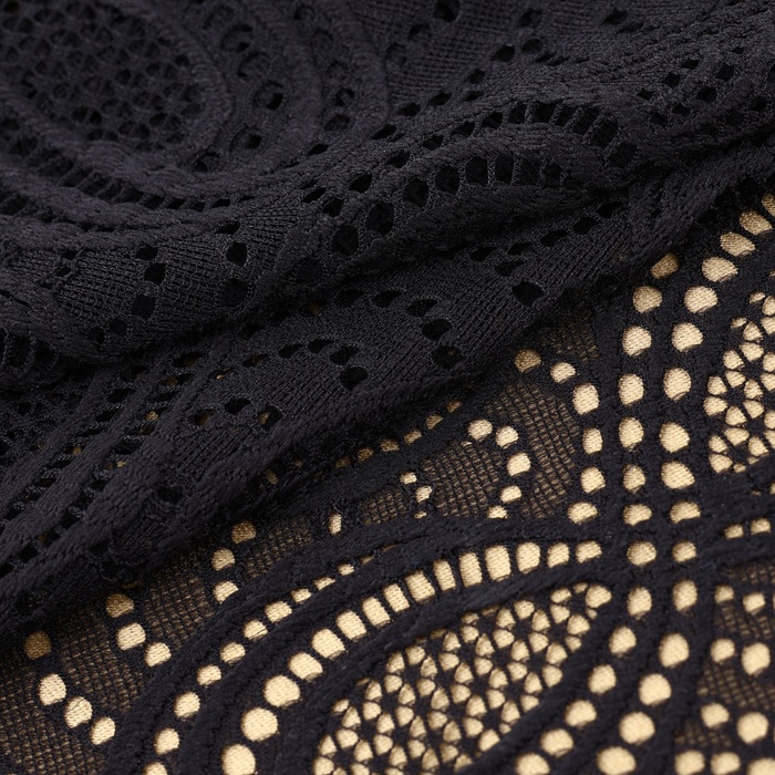 Представляем вашему вниманию универсальную чёрную эластичную ткань из коллекции кружевных материалов, отличающуюся высоким качеством и стильным дизайном. Этот материал вдохнёт жизнь в любой ваш проект, став изюминкой одежды или элементов декора.