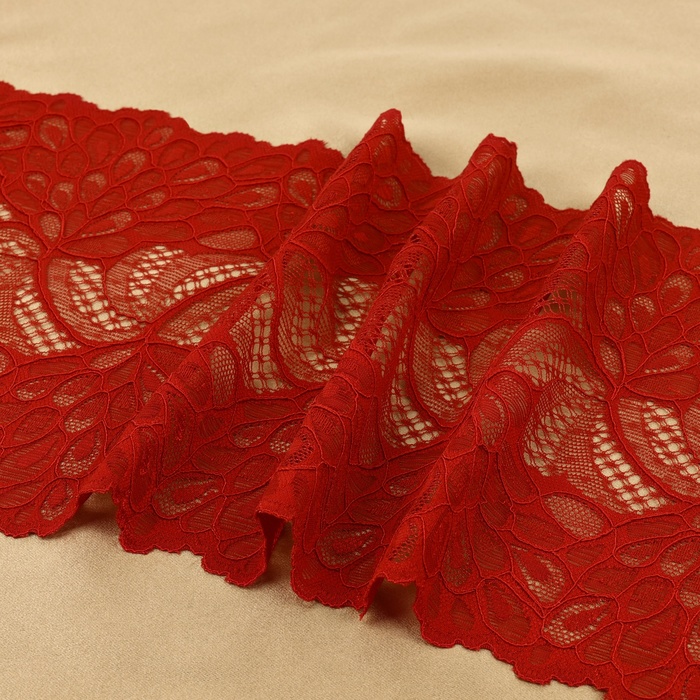 Кружевная эластичная ткань «Павлиний хвост», 180 мм, 2.7±0.5 м, бордовая — Характеристики
