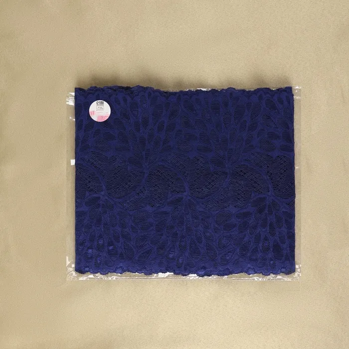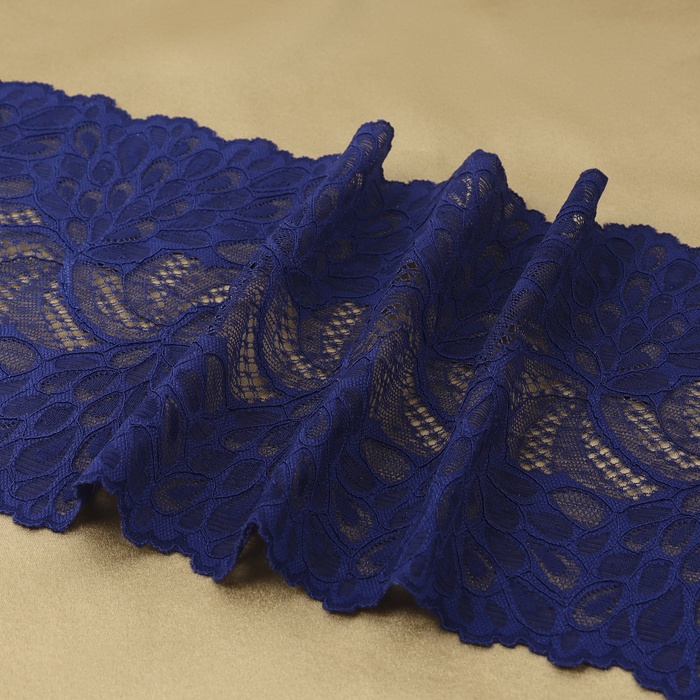 Кружевная эластичная ткань «Павлиний хвост», 180 мм, 2.7±0.5 м, тёмно-синяя — Характеристики