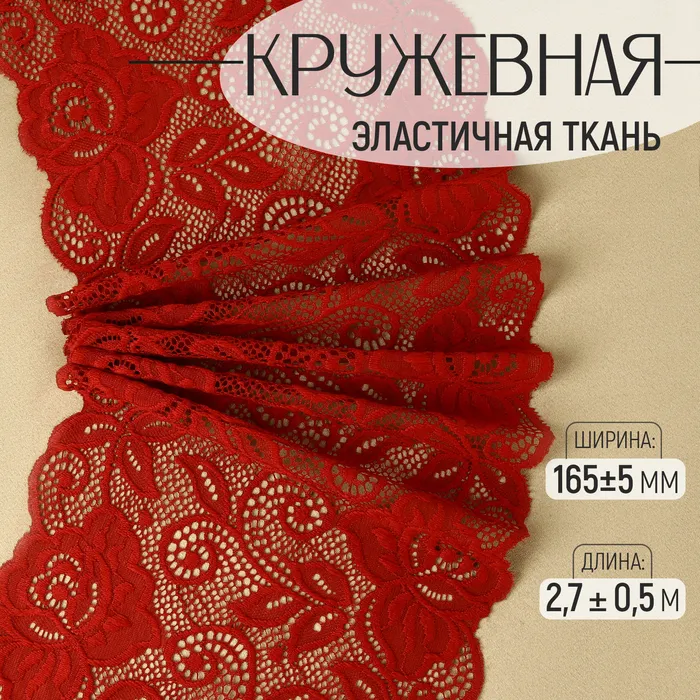 Кружевная эластичная ткань «Розы», 165±5 мм, 2.7±0.5 м, бордовая — Характеристики