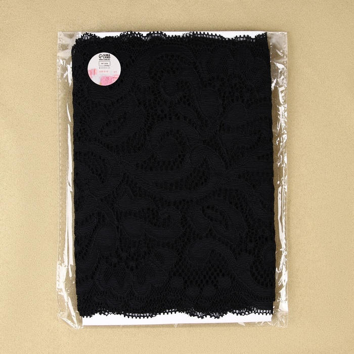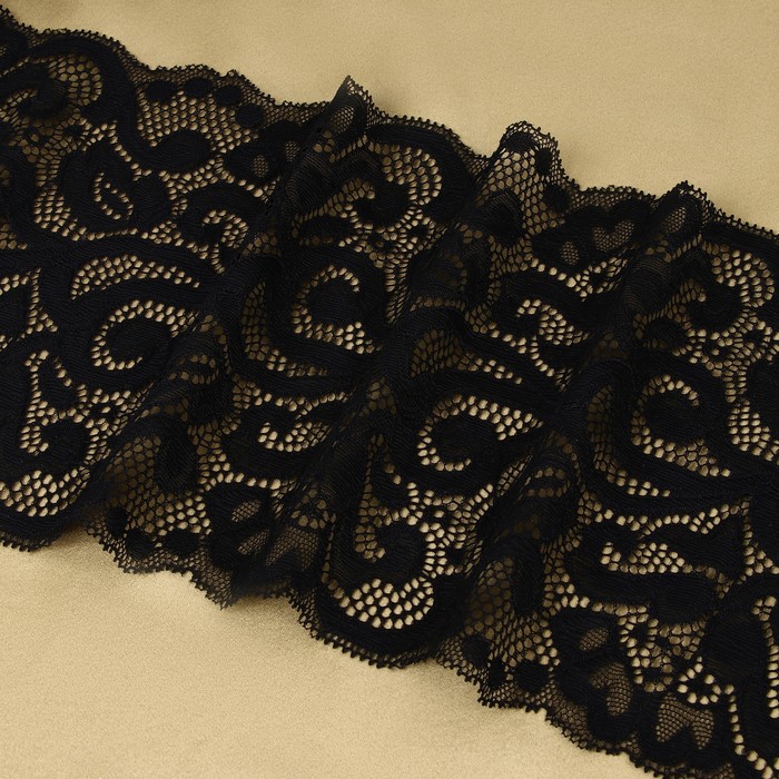 Кружевная эластичная ткань «Узоры», 175 мм, 2.7±0.5 м, чёрная — Характеристики