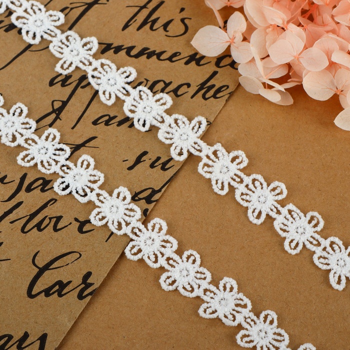 Кружево гипюровое, 15 мм, 14±1 м, цвет белый — Характеристики