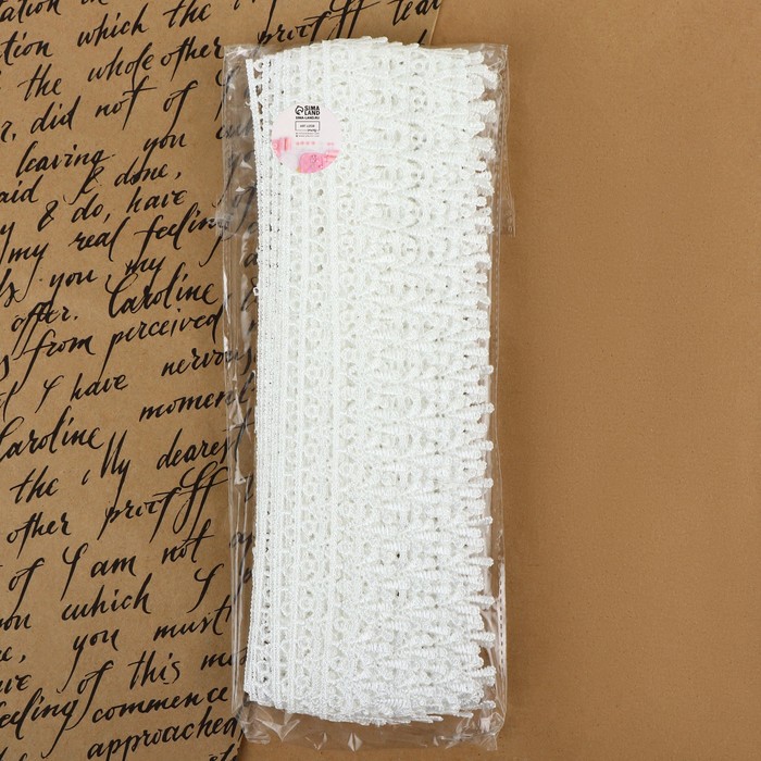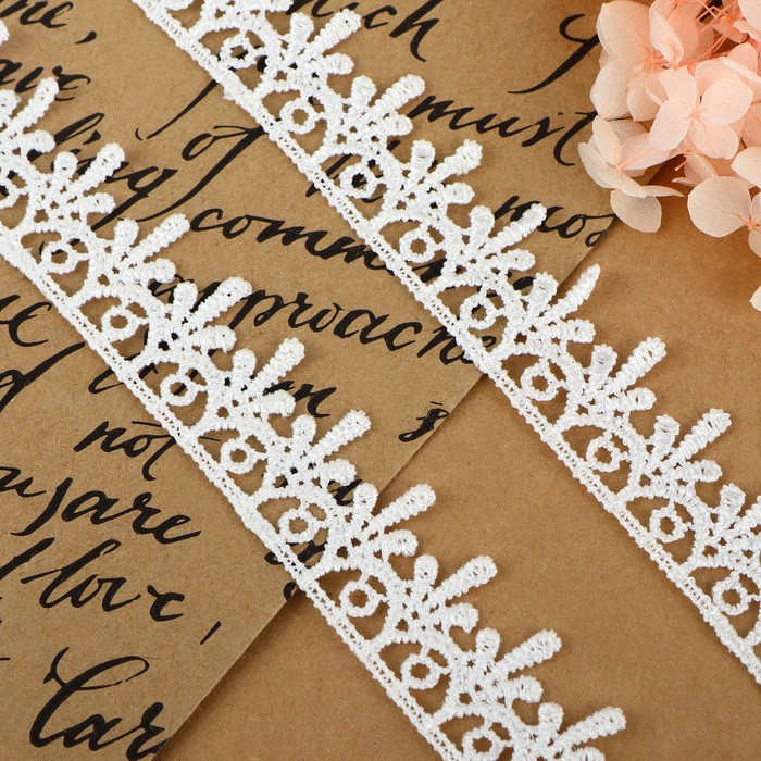 Кружево гипюровое, 20 мм × 14 ± 1 м, цвет белый — Характеристики