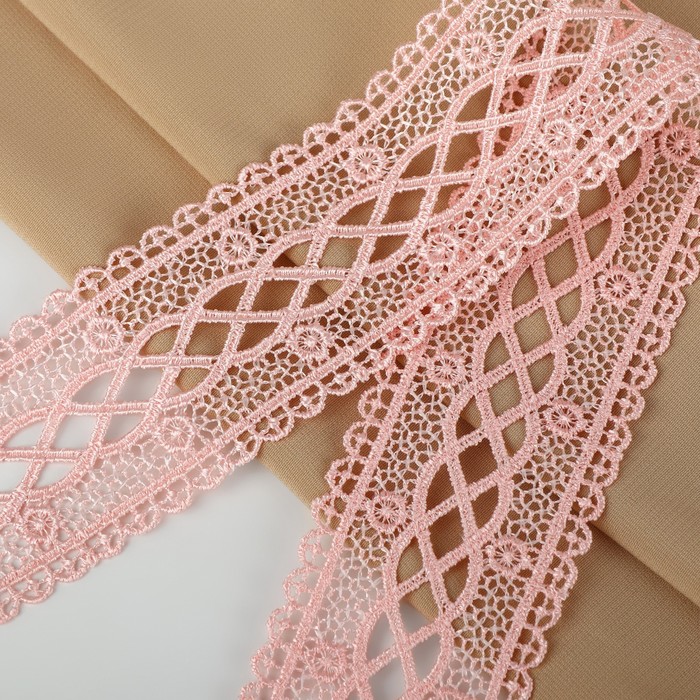 Кружево гипюровое, 40 мм, 11±1 м, нежно-розовое