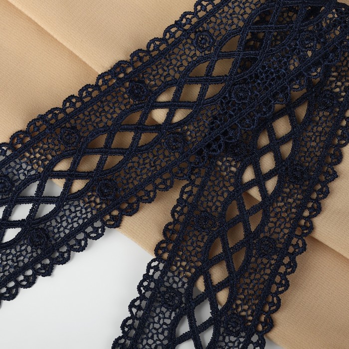 Кружево гипюровое, 40 мм, 11±1 м, тёмно-синее