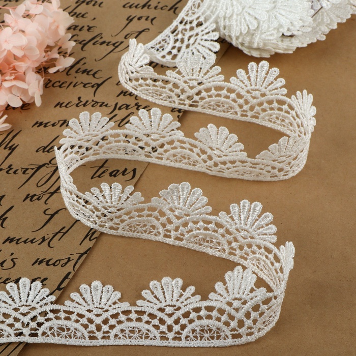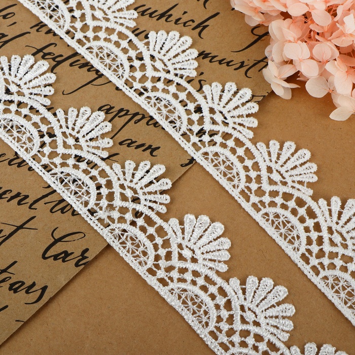 Кружево гипюровое, 40 мм × 9 ± 0,5 м, цвет белый — Характеристики