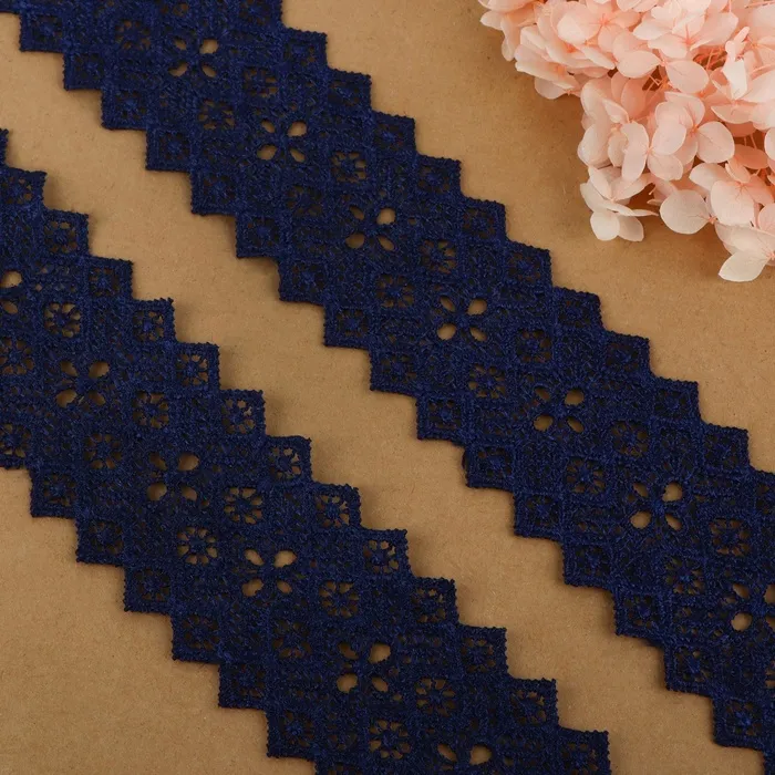 Кружево гипюровое, 45 мм, 6.8±0.5 м, цвет тёмно-синий — Характеристики