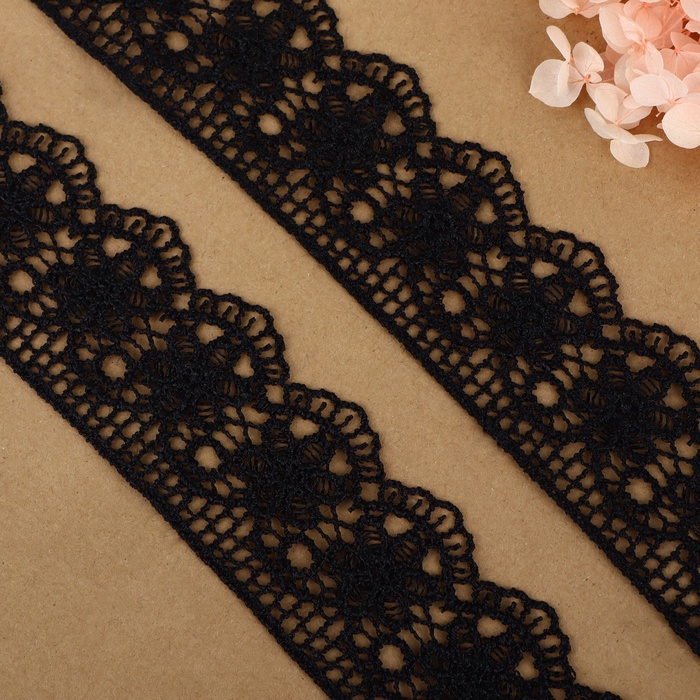 Кружево гипюровое, 45 мм × 6.8 ± 0.5 м, цвет чёрный — Характеристики