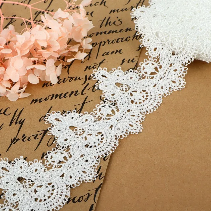 Кружево гипюровое, 55 мм, 6.8±0.5 м, цвет белый — Характеристики