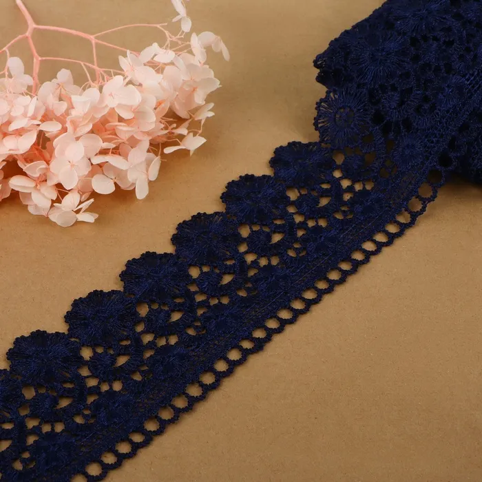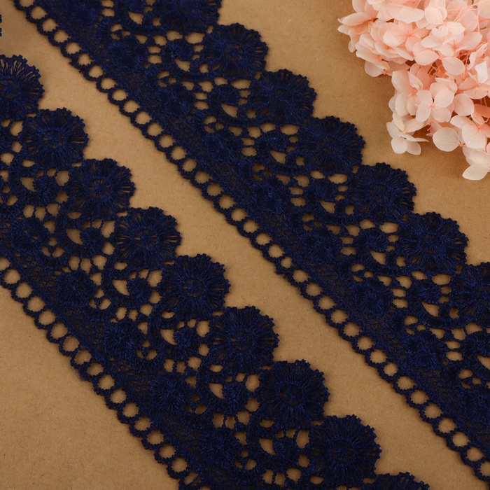 Кружево гипюровое, 60 мм, 6.8±0.5 м, цвет тёмно-синий — Характеристики