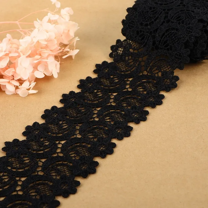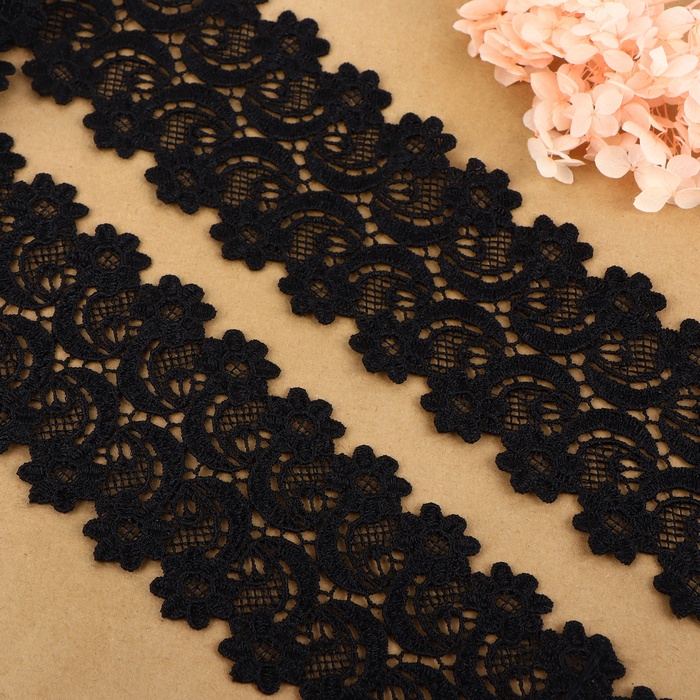 Кружево гипюровое, 65±5 мм, 6.8±0.5 м, цвет чёрный — Характеристики