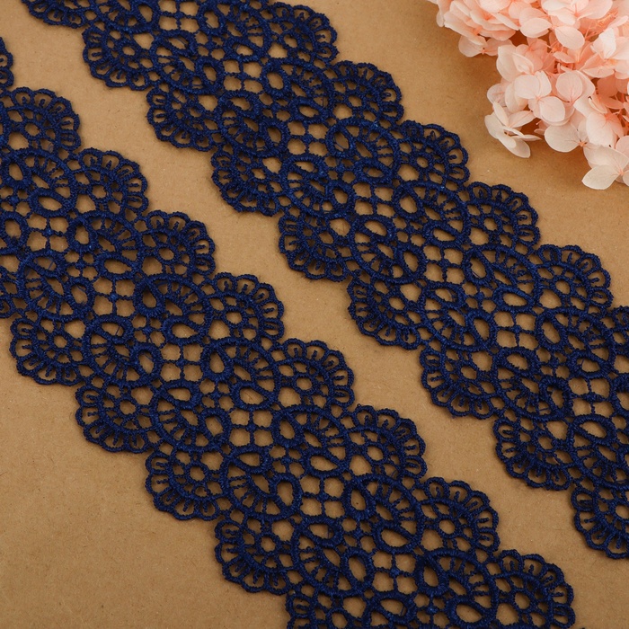 Кружево гипюровое, 65 мм, 6.8±0.5 м, цвет тёмно-синий — Характеристики
