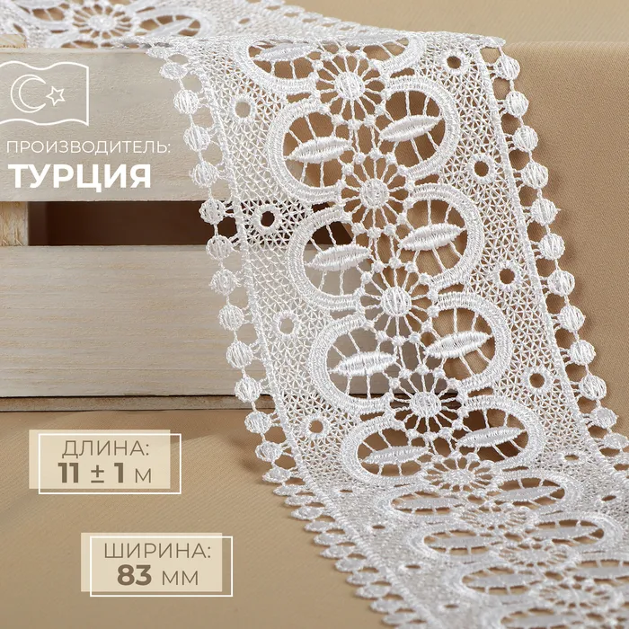 Кружево гипюровое, 83 мм, 11±1 м, цвет белый — Характеристики