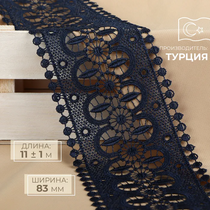 Кружево гипюровое, 83 мм, 11±1 м, цвет тёмно-синий — Характеристики