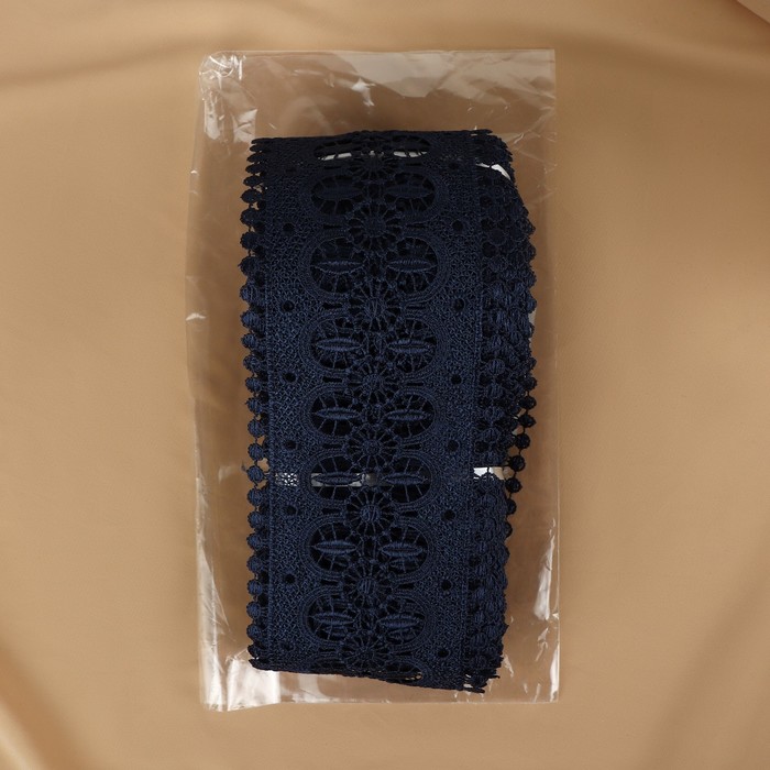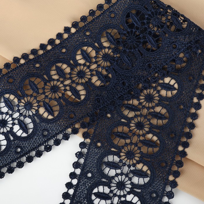 Кружево гипюровое, 83 мм, 11±1 м, цвет тёмно-синий
