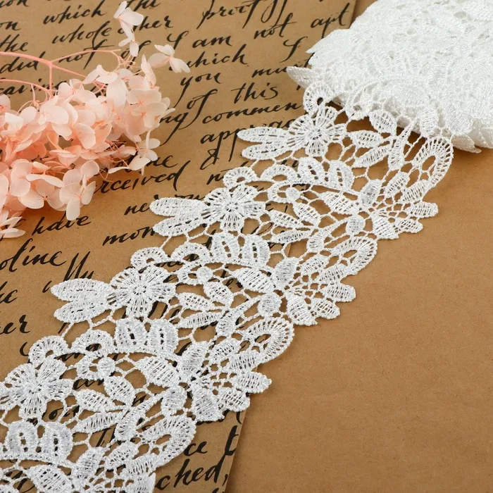 Кружево гипюровое, 85 мм, 6.8±0.5 м, цвет белый — Характеристики