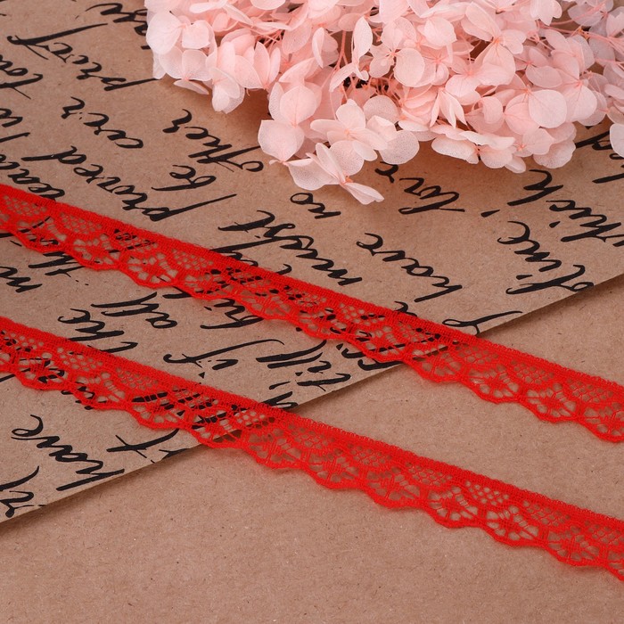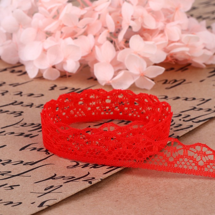 Кружево капроновое, 15 мм, 10±1 м, цвет красный №17 — Характеристики