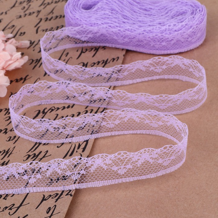 Кружево капроновое, 20 мм × 10 ± 1 м, цвет сиреневый — Характеристики