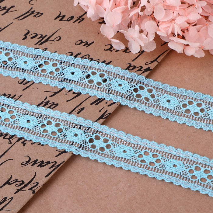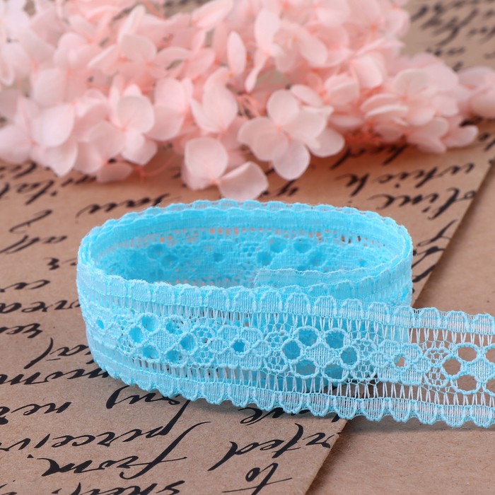 Кружево капроновое, 22 мм, 10±1 м, цвет голубой — Характеристики
