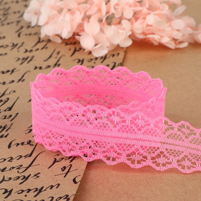 Кружево капроновое, 30 мм, 10±1 м, цвет розовый — Характеристики