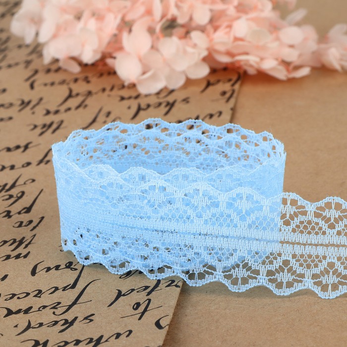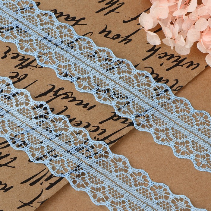 Кружево капроновое, 30 мм × 10 ± 1 м, цвет голубой — Характеристики