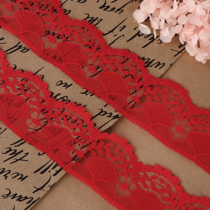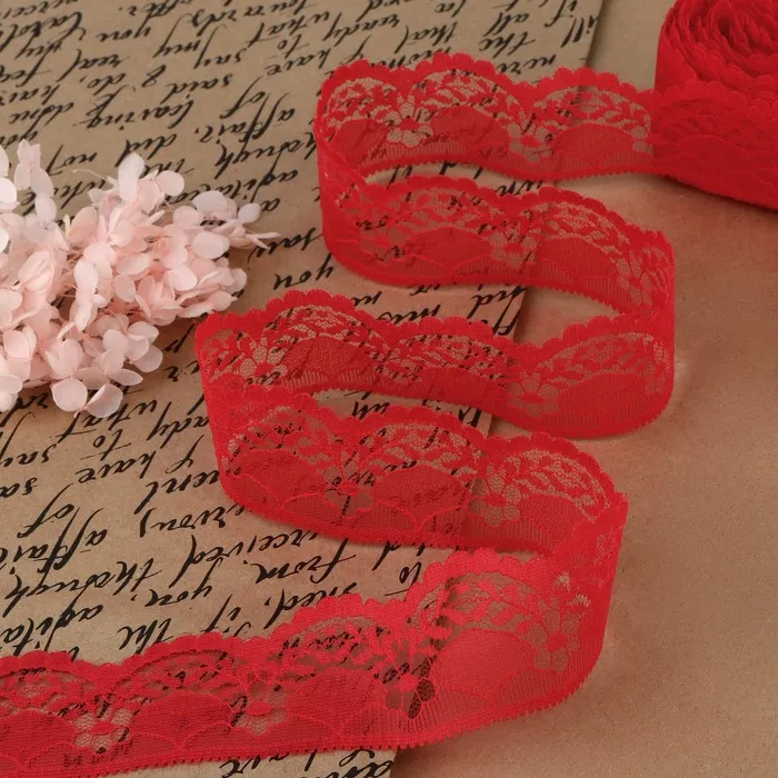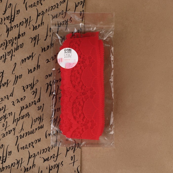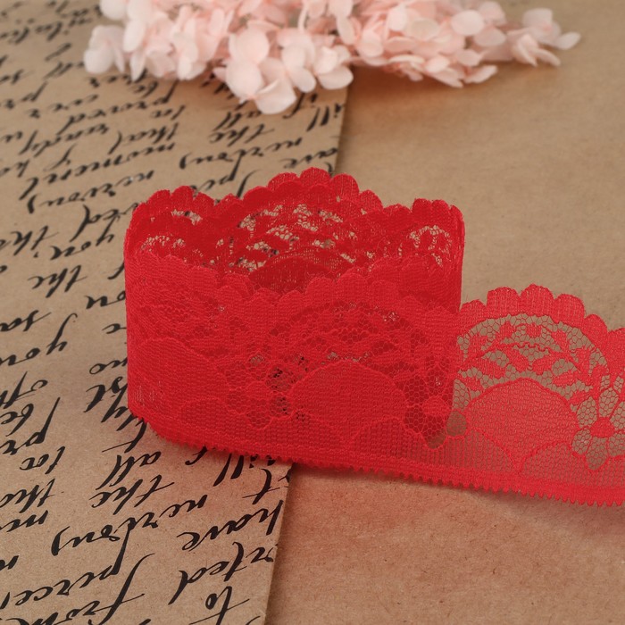 Кружево капроновое, 40 мм × 10 ± 1 м, цвет красный — Характеристики
