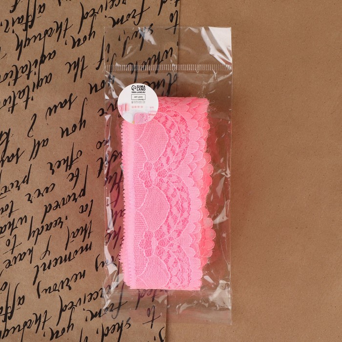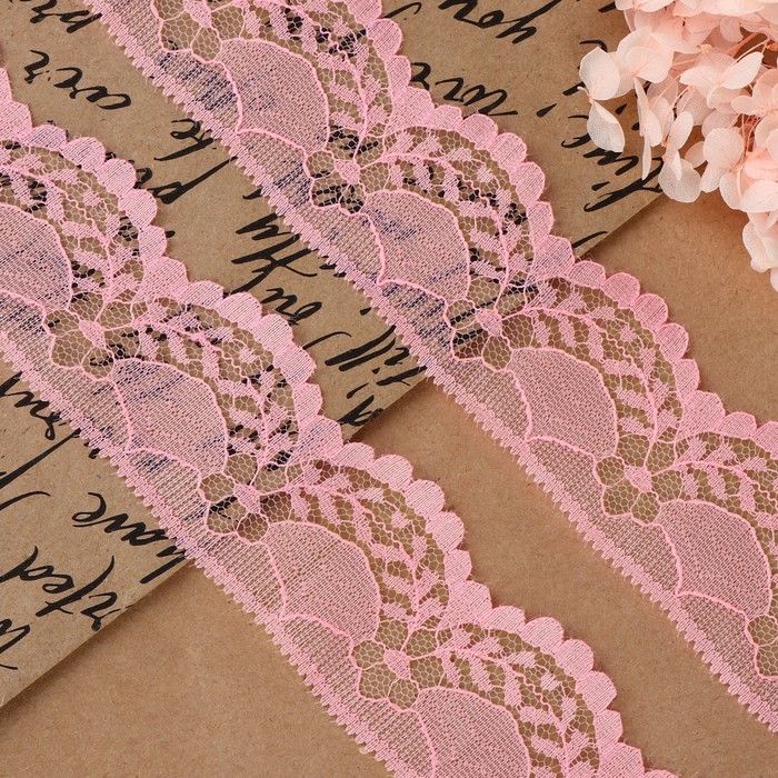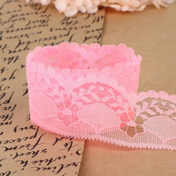 Кружево капроновое, 40 мм × 10 ± 1 м, цвет розовый — Характеристики