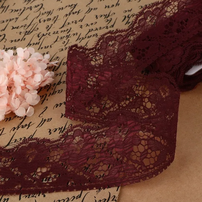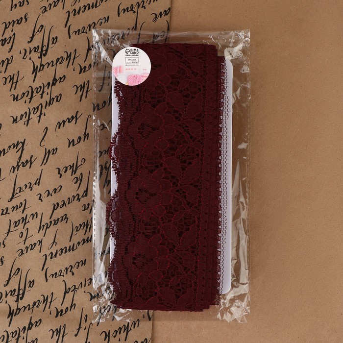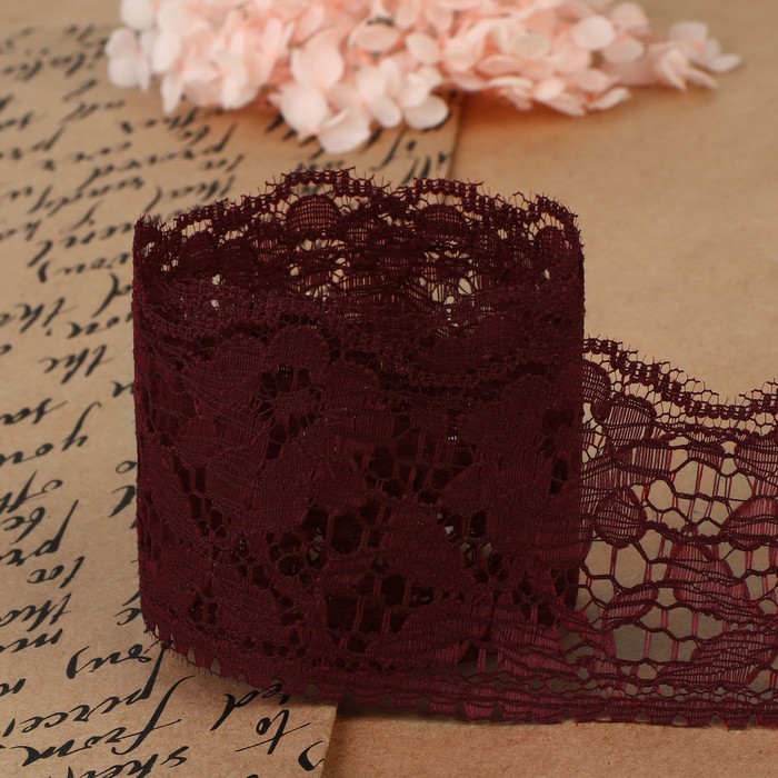 Кружево капроновое, 60 мм, 10±1 м, цвет бордовый — Характеристики