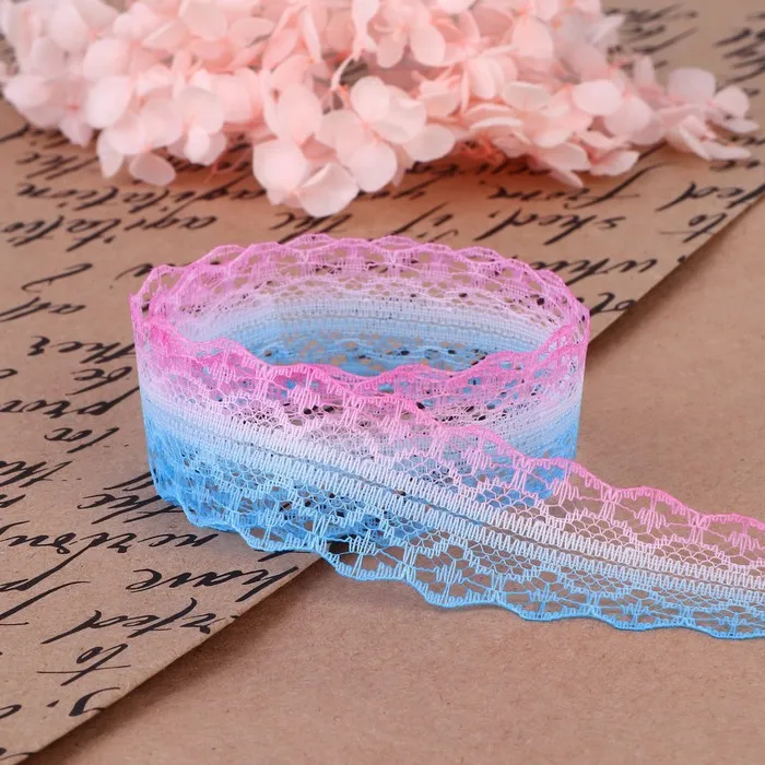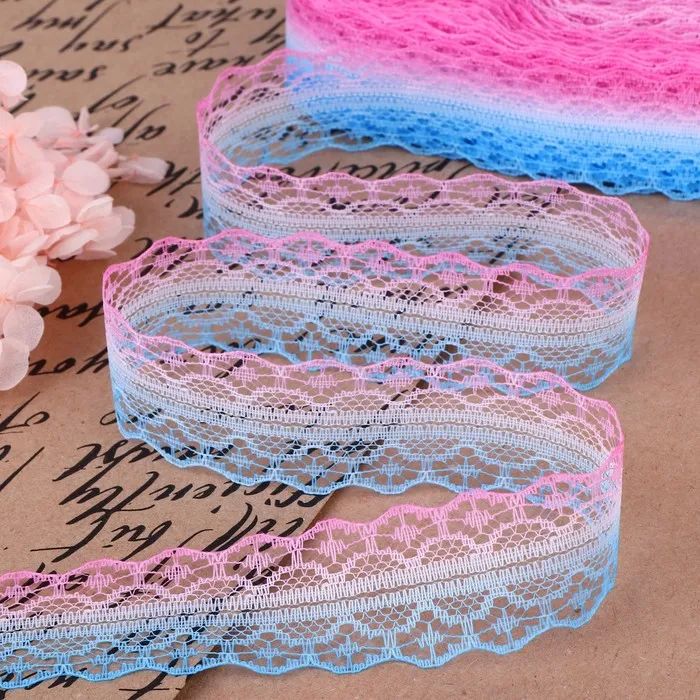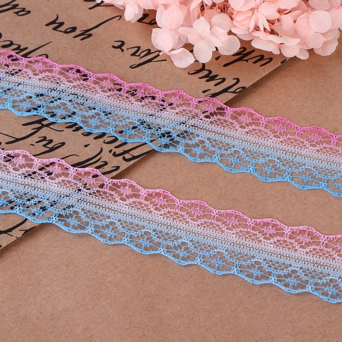 Кружево капроновое «Градиент», 28 мм, 10±1 м, цвет розовый/голубой №5 — Характеристики