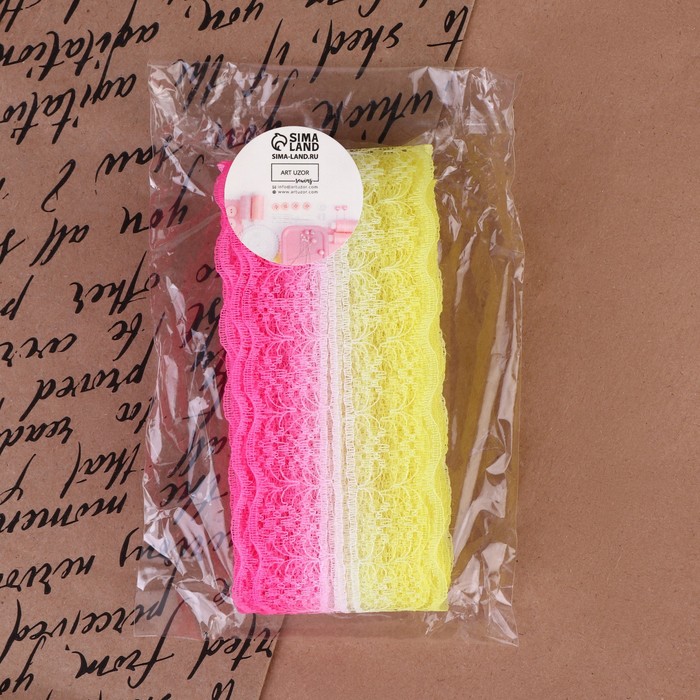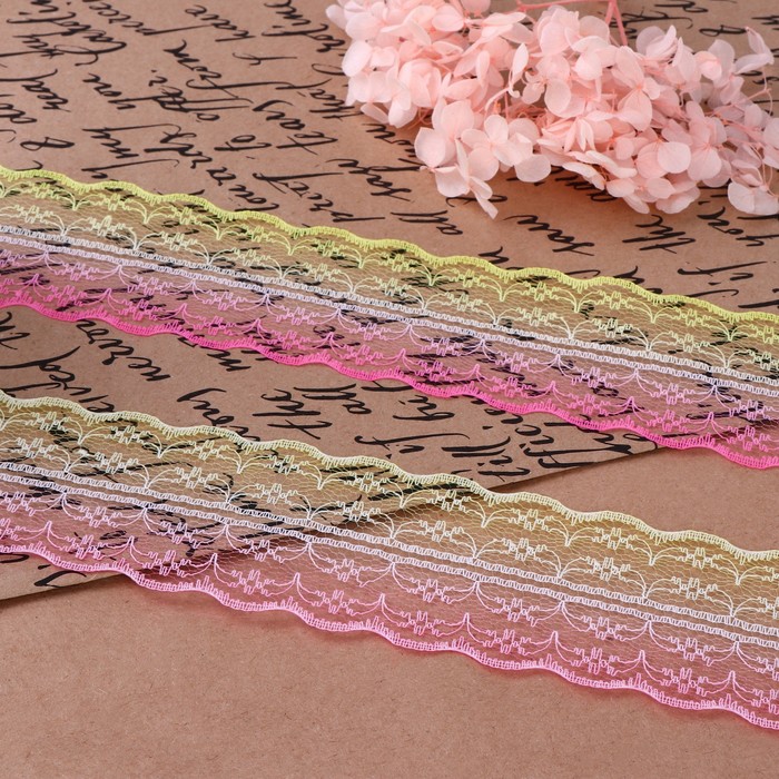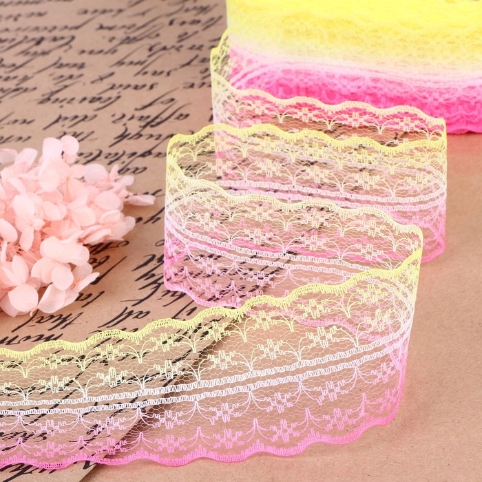 Кружево капроновое «Градиент», 45 мм, 8.5±1 м, цвет розовый/жёлтый №5 — Характеристики