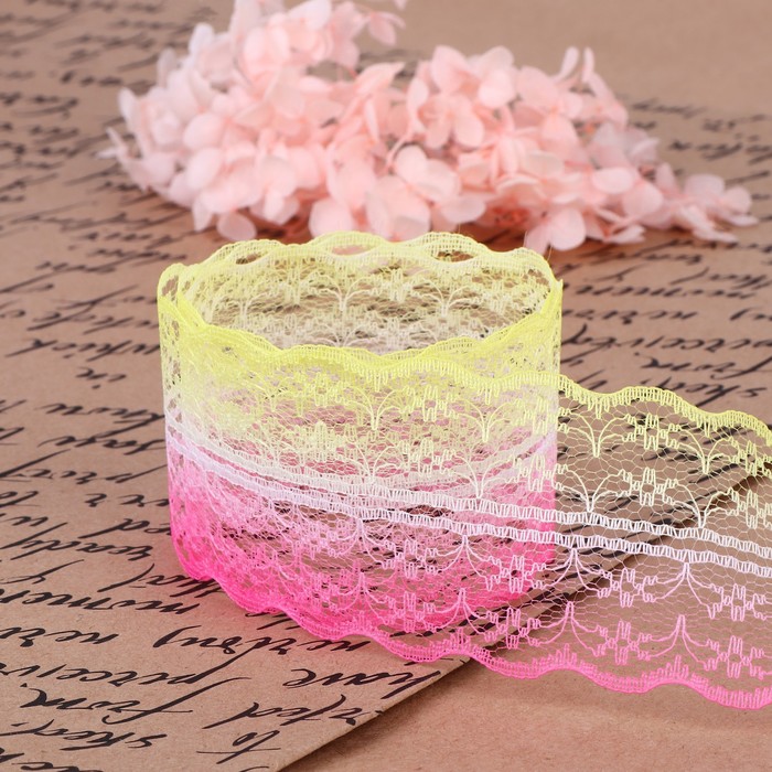 Кружево капроновое «Градиент», 45 мм, 8.5±1 м, цвет розовый/жёлтый №5 — Характеристики