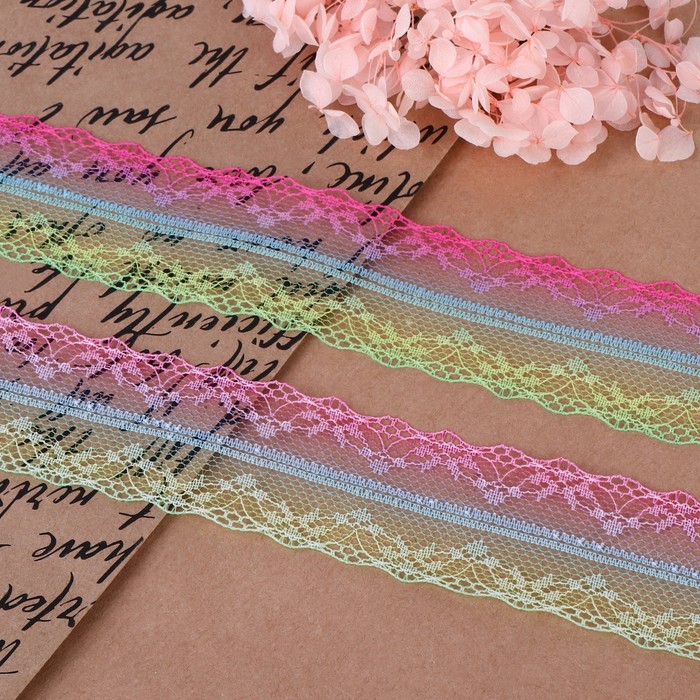 Кружево капроновое «Радуга светлая», 40 мм, 10±1 м, цвет разноцветный №4 — Характеристики
