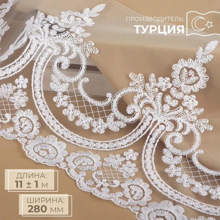 Кружево на сетке, 280 мм, 11±1 м, белое — Характеристики