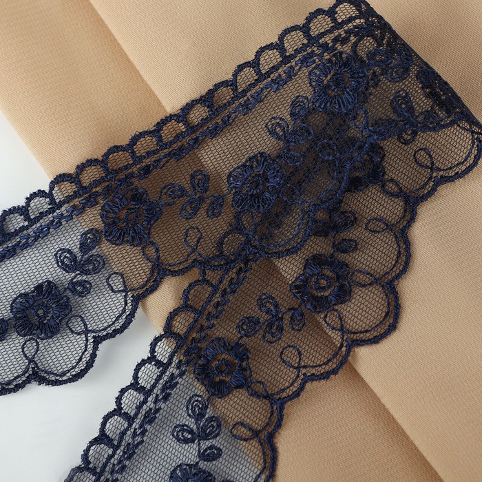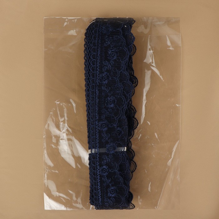 Кружево на сетке, 40 мм, 11±1 м, тёмно-синее