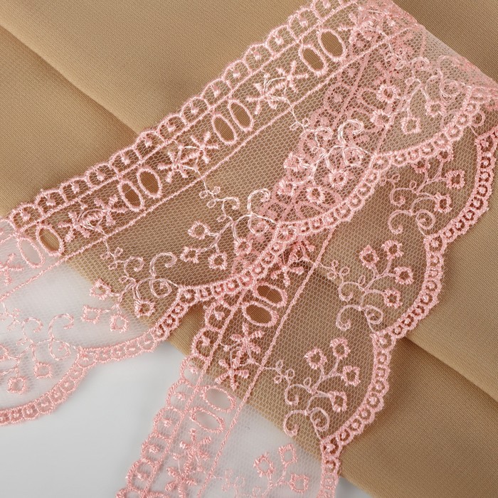 Кружево на сетке, 45 мм, 11±1 м, нежно-розовое