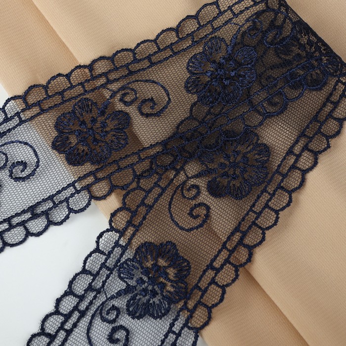 Кружево на сетке, 50 мм, 11±1 м, тёмно-синее — Характеристики